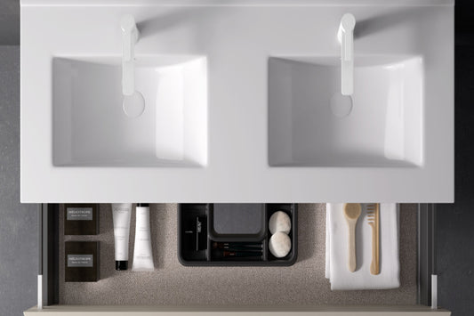 Muebles de baño - Colección Blanca - Lavabo integral 2 senos - 4 cajones suspendidos