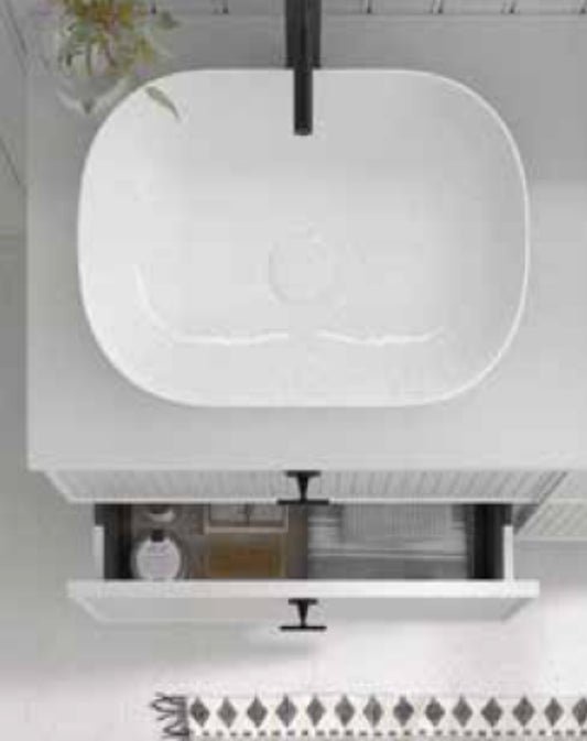 Muebles de baño - Colección Blanca - Lavabo blanco 1 seno - sobre encimera - 2 cajones suspendidos