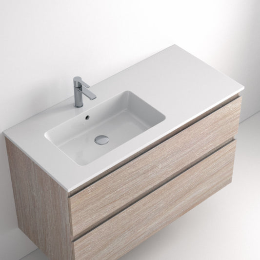 Muebles de baño - Colección Blanca - Lavabo integral 1 seno DESPLAZADO - 4 cajones suspendidos