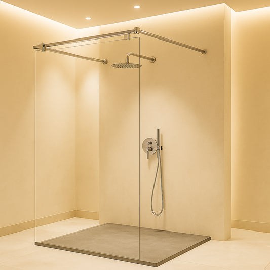 Mampara de ducha vidrio fijo + 2 barras 90º - Fresh Salomon