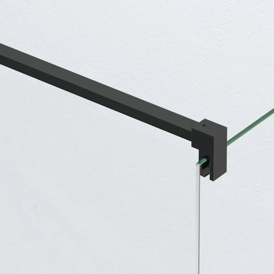 Mampara Walk-in simple: Panel fijo único instalado en el lado más largo de la ducha. El cristal debe cubrir más de la mitad del espacio para evitar salpicaduras. Los perfiles superiores pueden diseñarse en forma de "L" por estética, pero el vidrio es siempre una sola pieza.